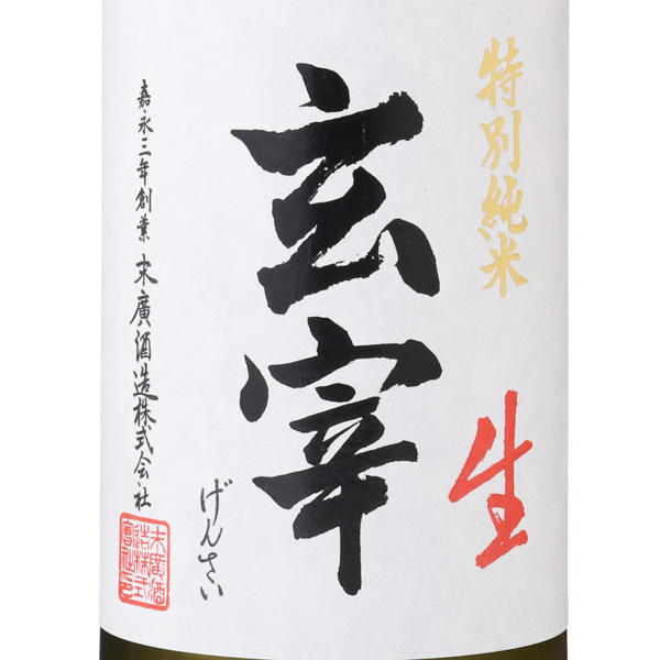 江戸時代、会津の日本酒の磯を築いた家老田中玄宰(はるなか)公の名前を頂いた玄宰(げんさい)シリーズは、『会津を醸す』をコンセプトとしています。玄宰特別純米生は、搾りたてをそのまま瓶詰した限定酒です。新酒らしくフレッシュで軽快な甘味と爽やかな酸が広がります。優しいお米の旨味が広がり、余韻も透明感のあるきれいな酒質に仕上がっています。蔵紹介