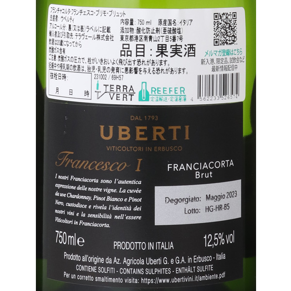 【決算SALE】フランチャコルタ・ブリュット・フランチェスコ・プリモ N.V. / ウベルティ