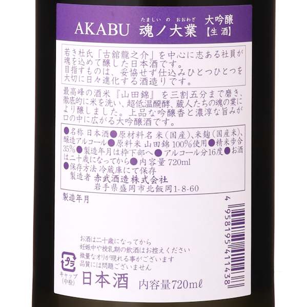 赤武 AKABU 魂ノ大業 大吟醸 生酒