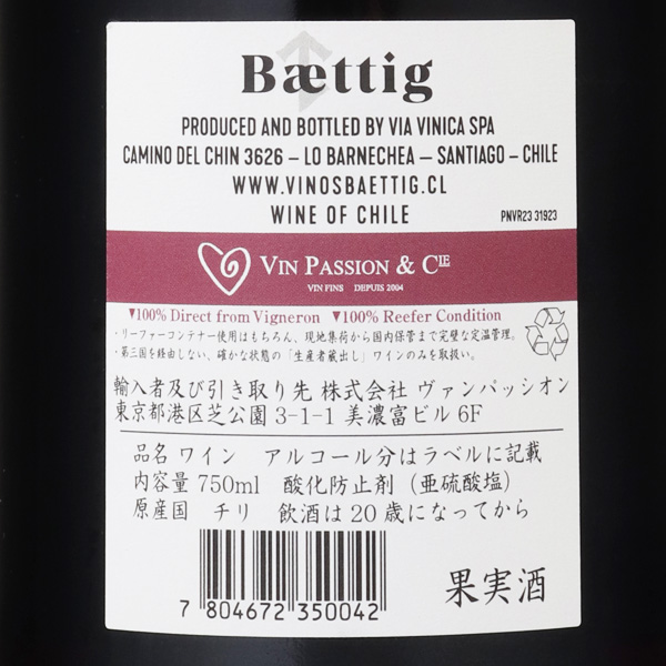 ベティッグがワインを造るのは、首都サンチアゴの南650キロのマジェコ・ヴァレイ。積算湿度は1226度とブルゴーニュより涼しく、カルシウムの多い火成岩と赤い粘土のやせた土壌。ベティッグの畑では特にカルシウムを多く含む、ブルゴーニュに近い土壌になります。冬に雨が降り、年間平均降水量は1084mmあるため、灌漑無しで栽培できる十分な降水量があります。畑の一部では、植樹開始時からドライファーミングを行っています。区画によって、樹がある程度育ち根が張ってからは、全ての畑でドライファーミングを行うことが可能になり、よりテロワールの個性が鮮明に現れてゆくワインが造られることが期待できます。栽培は除草剤を一切使用せず、なるべく自然な形で行うリュット・レゾネを慣行。ベティッグ家の故郷「トライゲン村」に見出した“エレガントピノ&シャルドネ”の新たなフロンティアで醸造されたワインです。