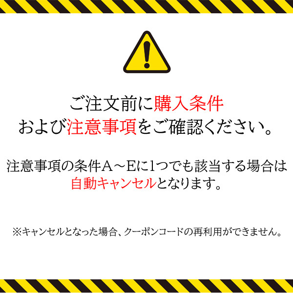 *ご注文が条件を満たさずキャンセルとなった場合、クーポンコードの再利用はできません。慎重にご注文ください。