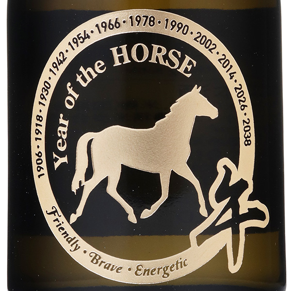 2026年の干支は“午(うま)”、そして六十干支では「丙午(ひのえうま)」の年にあたります。丙午は「勢い」「情熱」「行動力」を象徴するとされ、災いを払って道を切り開く強い力をもつ年といわれています。新しい一年の幕開けに、そんな力強い縁起を込めた贈り物はいかがでしょうか。年越しや新年のご挨拶にぴったりの、午をモチーフにした特別なエッチングボトル。ご自宅用にも、大切な方へのギフトにもおすすめです。中身は、究極の食中酒を目指し、日々躍進を続ける宮城の人気蔵“新澤醸造店”のお酒。その代表銘柄「愛宕の桜」を2026年の干支である午をエッチングしたボトルに詰めています。