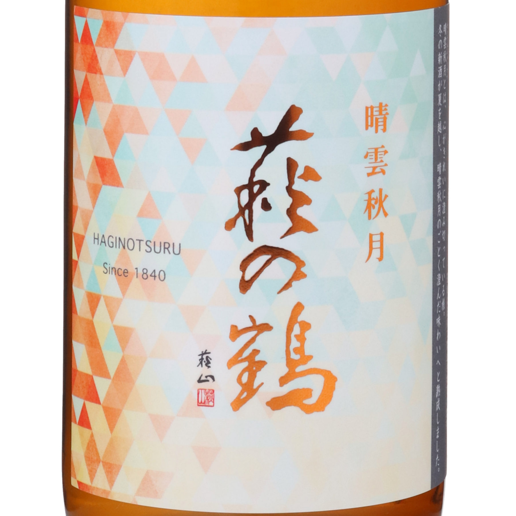 萩の鶴の「秋あがり」が、名前も新たにリニューアルしました。「晴雲秋月(せいうんしゅうげつ)」とは、心が澄み切った様子を表す言葉で、冬に搾られた新酒が夏を越し、まるで晴雲秋月のごとく澄んだ味わいへと熟成したことを意味しています。穏やかな香りとやさしい酸味に、ひと夏の熟成によるまろやかさが加わり、すっきりとしながらもやわらかな飲み口に仕上がっています。蔵紹介