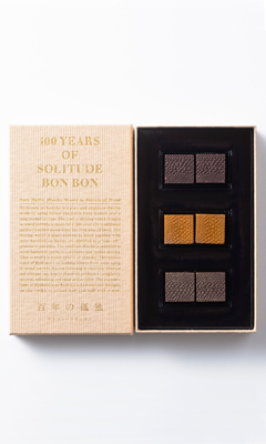 百年の孤独は香り高い麦焼酎を長い時間をかけて樽の中で熟成させた逸品です。この焼酎の香りを生かしたチョコレートを、パティシエールの佐野恵美子さんと協力して、三つの味が完成。土を醸し、心を醸してつくりあげたこの焼酎とチョコレートが出会い素敵なひとときを醸し出します。