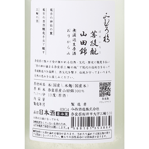 みむろ杉 菩提もと 山田錦 無濾過生原酒 おりがらみ *クール便のみ
