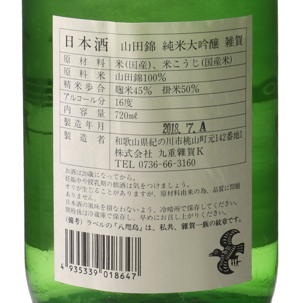 上品な吟醸香と山田錦のお米の旨み、絶妙なキレのバランスが特長の純米大吟醸酒。雑賀の中でも特に飲みやすく、純米大吟醸らしい旨みがあり、まさに正統派の日本酒といった仕上がりです。蔵紹介