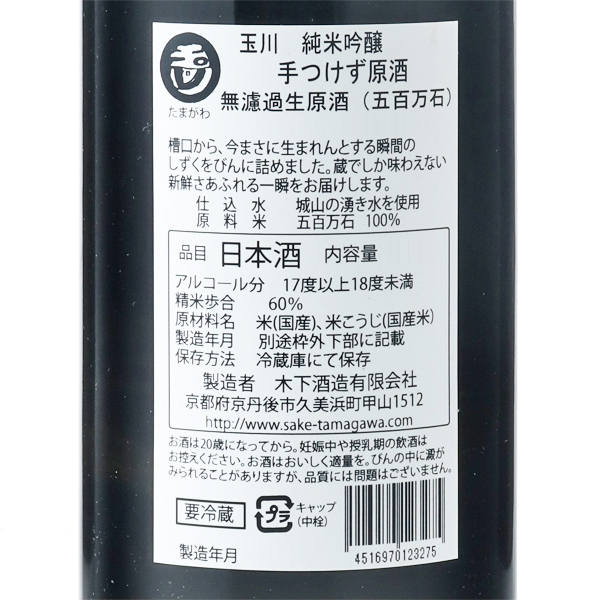 玉川 手つけず原酒 純米吟醸 五百万石 生