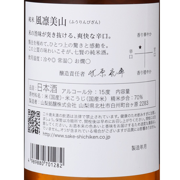 七賢 風凛美山 純米酒