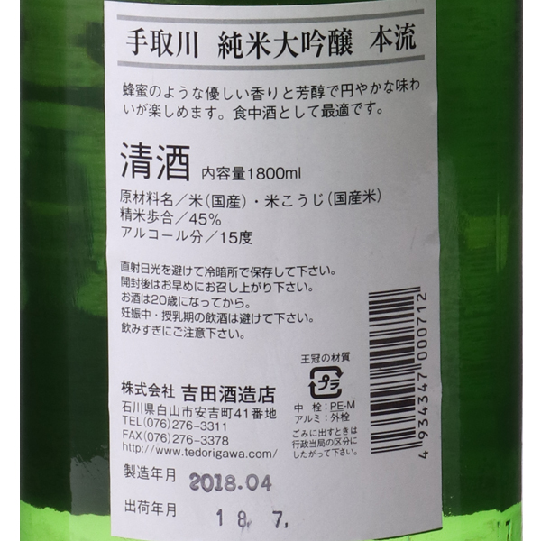手取川 吟 本流 純米大吟醸
