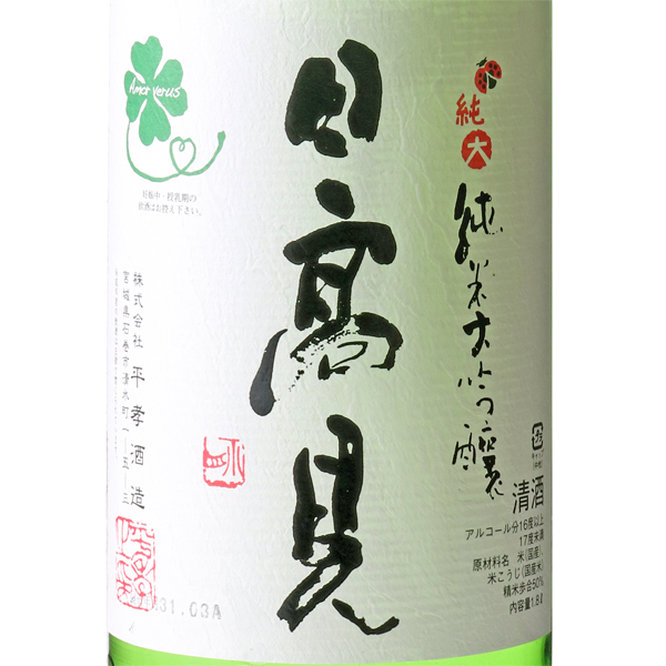 溌剌とした新酒ならではの味わいが楽しめます。さらに注目なのは至高の原料で醸された純米大吟醸ということ。麹米は、兵庫県吉川産特等山田錦。掛米に、兵庫県旧東条町特等山田錦を使用。ラベルにデザインされたクローバーは春の喜びと、酒造りに対する真実の愛を表しているそうです。蔵紹介
