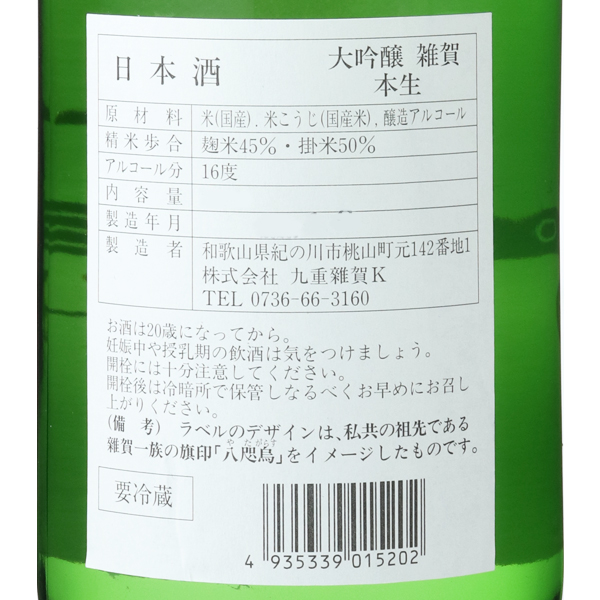 雑賀ブランド、大吟醸のしぼりたての本生です。スカッと上品に立つ吟醸香とともに、新酒ならでのフレッシュ感とスッキリとしたキレが心地よい辛口です。和洋中のお料理によく合います。蔵紹介