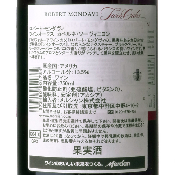ウッドブリッジ・ツインオーク・カベルネ・ソーヴィニヨン / ロバート・モンダヴィ