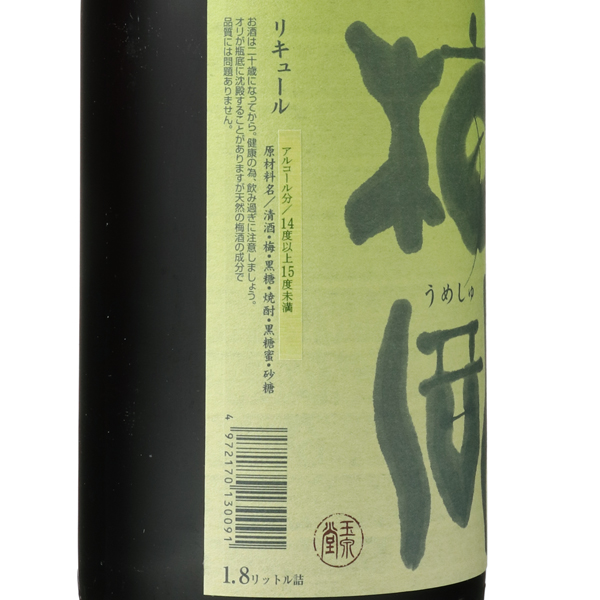 酸味料・香味・保存料を添加しない天然素材にこだわった健康志向の梅酒。梅酒用に自家醸造した清酒に新鮮な青梅白加賀・黒糖・黒糖蜜とで漬け込み、自家蒸留し三年熟成した米焼酎に完熟の鶯宿と氷砂糖とで漬け込みました。梅の実を取り出し、清酒ベースの梅酒と米焼酎ベースの梅酒をブレンドし更に熟成させた、こだわりの梅酒です。黒糖の香りと梅の香りがマッチングし、まるでカシスのような風味を感じます。甘さをおさえ、酸味を効かせた通好みの梅酒です。オンザロックにてお楽しみください。蔵紹介