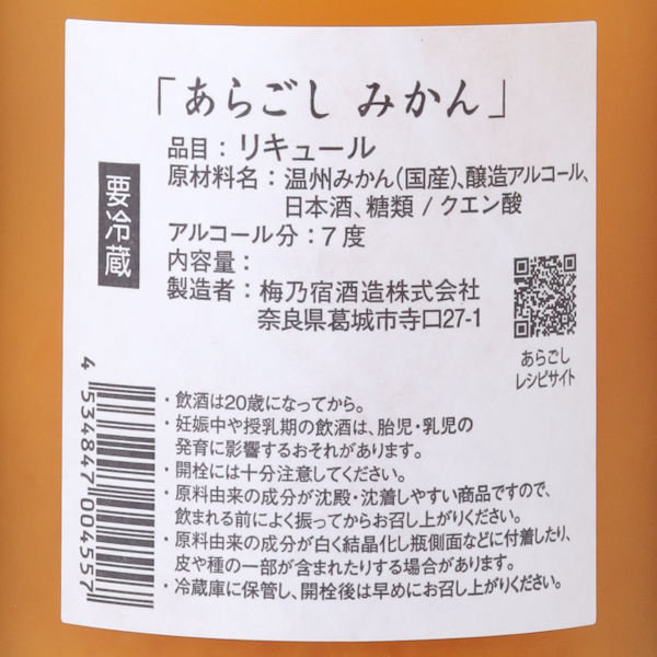 梅乃宿 あらごしみかん酒 / 梅乃宿酒造 *クール便のみ