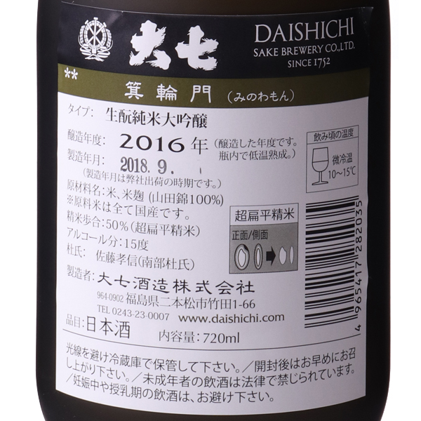 大七 箕輪門 純米大吟醸
