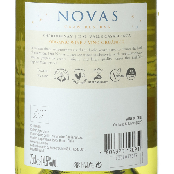 星が誕生する時、エネルギーや光を宇宙に放出します。古代の天文学者が幸運にもこの星の誕生を目撃し、「ノヴァ」と呼びました。この「ノヴァス」は自然の行いを辛抱強く観察を続けた事に対する賛辞を意味しています。ブドウ畑に戻した草花や昆虫・動物等が作る循環する生態系環境の中、有機栽培で育てられたブドウから丁寧に造られたワインです。黄金色で、白桃や柑橘系、バナナやトーストしたナッツのアロマが感じられます。口当たりはクリーミーで凝縮感があり、バランスの取れた酸味が感じられ、ベルベットのような滑らか舌触りが、凝縮感のある長く続く後味に続きます。蔵紹介