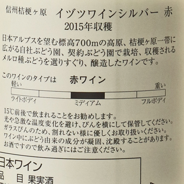 日本アルプスを望む標高700mの高原、桔梗が原一帯に広がる自社ぶどう園、契約ぶどう園で栽培、収穫される上質なメルローを使用し、芳醇な果実の香りがあり、優しいタンニンとコクが調和されたミディアムボディの赤ワインです。蔵紹介