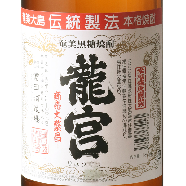 龍宮 かめ仕込み 黒糖焼酎 30度 / 富田酒造場