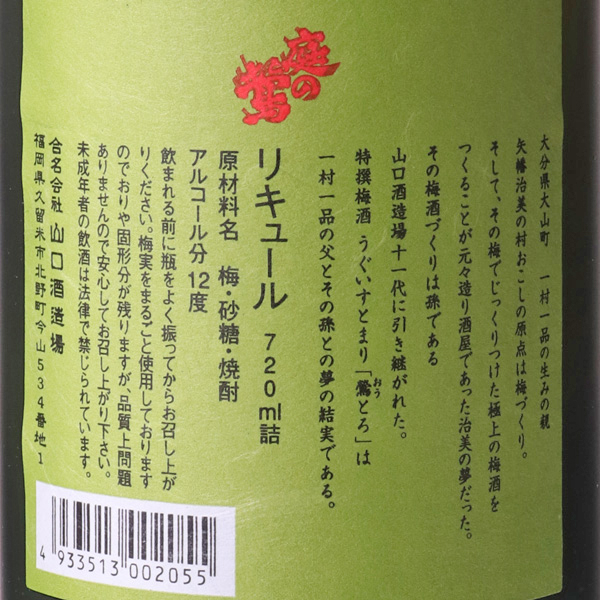 うぐいすとまり 特撰梅酒 鶯とろ / 山口酒造場