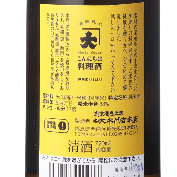 こんにちは料理酒 プレミアム / 大木代吉本店