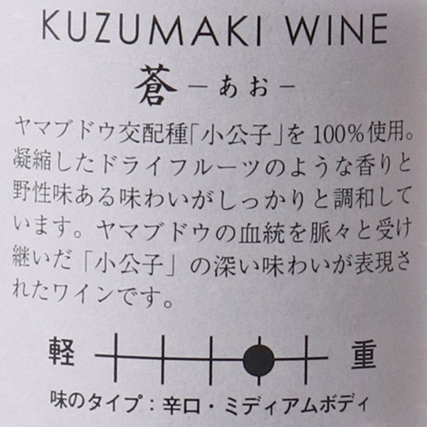 山ぶどう交配種である小公子は珍しいブドウ品種で、単一品種で商品化しているところはほとんどありません。品種の特徴としては、あまりパワフルではありませんが、スパイシーで、シラーに似ているところがあります。凝縮したドライフルーツ、草原のような香り、野性味のある味わいがしっかりと調和した深い味わいの赤ワインです。蔵紹介