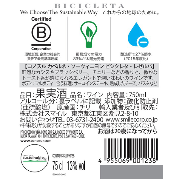 カベルネ・ソーヴィニヨン ビシクレタ・レゼルバ / コノスル