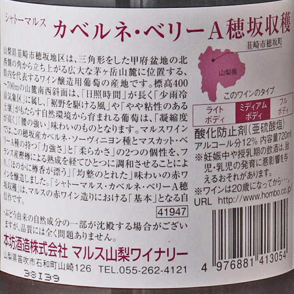 シャトーマルス カベルネ・ベリーA 穂坂収穫 2019 / マルス穂坂ワイナリー