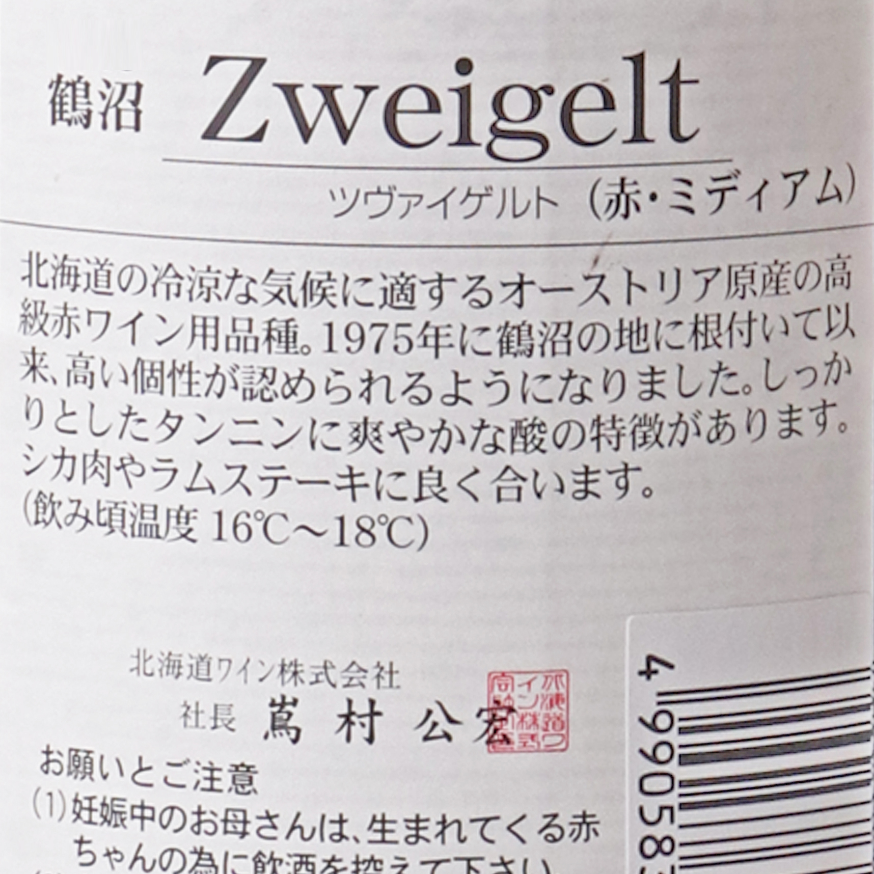 オーストリア原産の赤ワイン用葡萄品種ツヴァイゲルト・レーベ。1975年に鶴沼に根付かせたこの品種は、現在は冷涼な気候での赤ワイン主力品種として北海道各地で栽培されるようになりました。ミディアムボディの適度なタンニンと、野性的な果実香がラムステーキなどによく合います。蔵紹介
