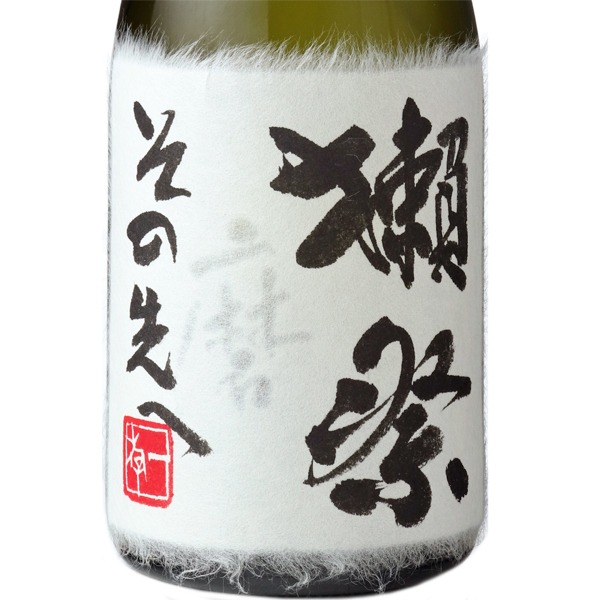 獺祭の最高峰である「磨きその先へ」は、「磨き二割三分」を超えるものとして造られました。常識的な純米大吟醸では踏み出せない酒質を目指し、造りの技術面においても、常識的な製造技術から一歩踏み出しました。美しい香りと両立する味の複雑性・重層性と長い余韻。日本の伝統美濃手漉き和紙を使用、書家山本一遊先生の揮毫によるラベルです。