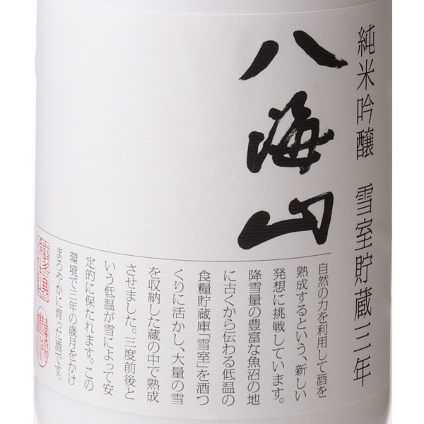 雪室とは、まさに天然の冷蔵庫であり、雪と共に暮らしてきた先人たちの知恵と経験が育んだ伝統的な貯蔵技術のひとつです。八海山雪室では電気エネルギーを用いないで、雪の温度で日本酒をゆっくり熟成させることを目的とした、世界的にも珍しい環境に優しい建物です。1,000トンの雪を収容し、最長5年をかけて日本酒を熟成させます。3度前後という低温が保たれた雪室で3年の時を経た純米吟醸。降雪量豊富な雪国、魚沼の自然と伝統が育んだまろやかな味わいです。蔵紹介