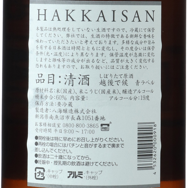 八海山 越後で候 青ラベル しぼりたて生原酒