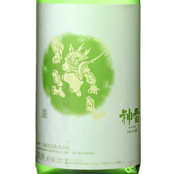 課せられた使命は、先人たちが築き上げた清酒という文化を伝承し、生活の潤いを、人生の喜びと悲しみを、共に味わっていくこと1716年創業。酒銘の神雷の由来はその昔雷が酒造蔵に落ちたが、大過なかったこと、また神石にあやかった事から。ちなみに稲妻は稲の妻と書くとおり、豊かな恵みをもたらす象徴であることから、大変縁起の良い名前です。酒蔵は中国山脈の山あい、標高500mに位置し、冬場は氷点下を記録します。さらに夏場も涼しいため、お酒の仕込、貯蔵共に大変適した環境が整っています。また、裏山の井戸から軟水、蔵の地下からは中硬水が得られ、用途によって使い分けが出来るのも特徴となっています。
