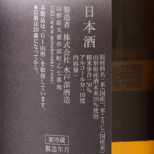 山形県の貴重な酒造好適米、酒未来を50%精米して醸した純米吟醸酒。メロンや白桃のような香り、果実や和菓子を思わせる甘味と酸が豊かに感じられ、さらりと爽やかな余韻が心地よい味わいです。蔵紹介