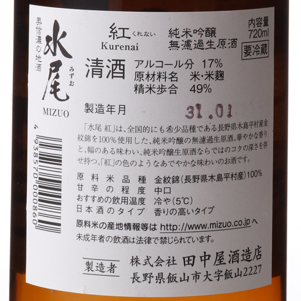 水尾 紅 純米吟醸 無濾過生原酒