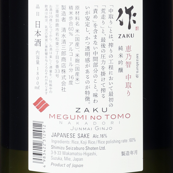 作 恵乃智 中取り 純米吟醸