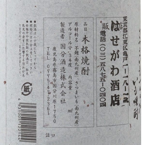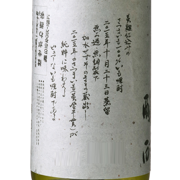 現代の名工が手掛ける至高の一品!!1970年に、焼酎製造者10社で、加治木酒造協業組合を設立、その後1986年に、製造免許の一本化に賛同した6社で、国分酒造協業組合を設立。さらに組織改編を経て、2015年に国分酒造株式会社となりました。最近は芋100%の焼酎が様々な蔵で造られていますが、1998年に同蔵の商品である、いも麹 芋が業界初の芋100%の焼酎として発売されました。