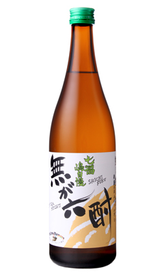 土壌が米作に適さない新島では、古くからあめりか芋(七福芋)とよばれる白くて小さな甘いさつま芋が、重要な食料として島内全域で造り続けられていました。しかし、時代が移りかわり、生産量は次第に減少。昭和60年ころには芋焼酎は製造されなくなってしまいました。近年、意欲的な芋生産者・関係者の熱意でこの芋の量産が始まり、この芋の正式名称七福を冠し、再び焼酎を仕込むことが出来るようになりました。重機と人力で30年ぶりに開墾した畑で、肥料も農薬も使わず、さらに雨以外には水も撒かないという無散水でつくった芋を使用しています。製造工程にもこだわり、無肥料・無農薬・無散水・無濾過・無調整・無加水、で無が6つと言う事から「無が六酎(むがむちゅう)」と名付けられました。ほんのりとした麦麹の香ばしさと七福芋の甘い香味を味わえます。