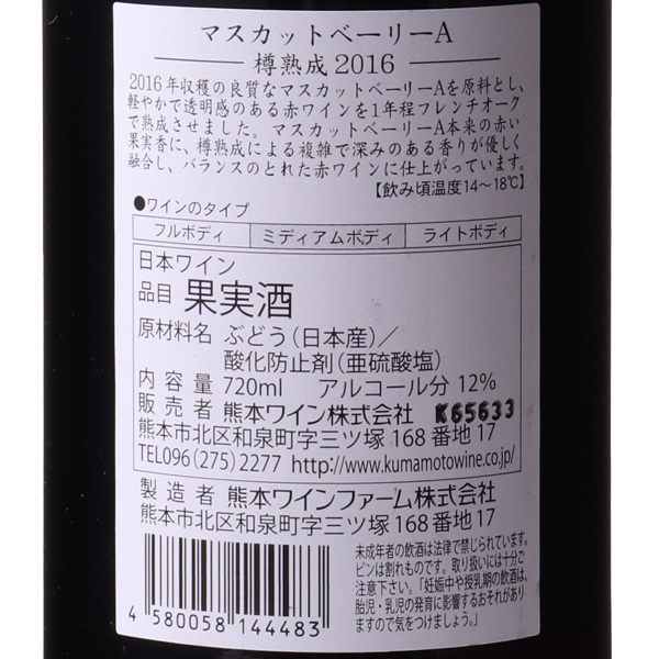 マスカットベリーA 樽熟成 2016 / 熊本ワインファーム