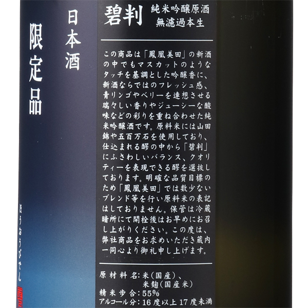 鳳凰美田 碧判 純米吟醸原酒 無濾過本生