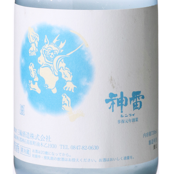 課せられた使命は、先人たちが築き上げた清酒という文化を伝承し、生活の潤いを、人生の喜びと悲しみを、共に味わっていくこと1716年創業。酒銘の神雷の由来はその昔雷が酒造蔵に落ちたが、大過なかったこと、また神石にあやかった事から。ちなみに稲妻は稲の妻と書くとおり、豊かな恵みをもたらす象徴であることから、大変縁起の良い名前です。酒蔵は中国山脈の山あい、標高500mに位置し、冬場は氷点下を記録します。さらに夏場も涼しいため、お酒の仕込、貯蔵共に大変適した環境が整っています。また、裏山の井戸から軟水、蔵の地下からは中硬水が得られ、用途によって使い分けが出来るのも特徴となっています。