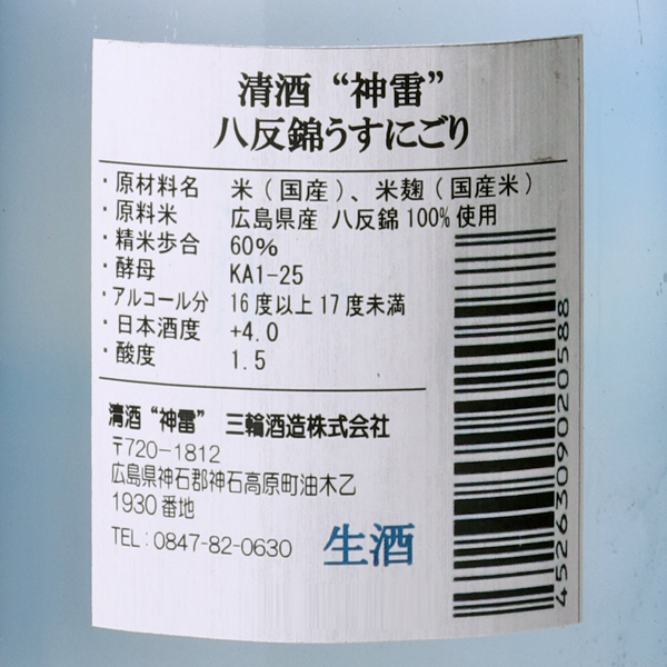 神雷 純米 八反錦 うすにごり