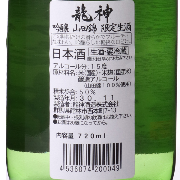 龍神 吟醸 山田錦 冬季限定 生