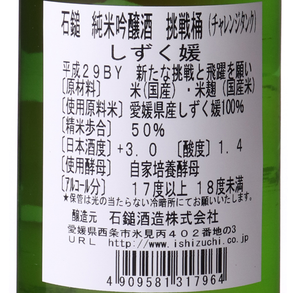 石鎚 挑戦桶 純米吟醸 しずく媛