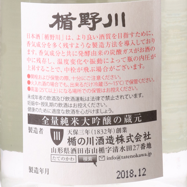 楯野川 純米大吟醸 しぼりたて 生