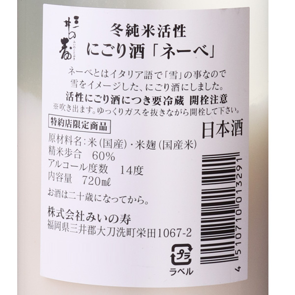 三井の寿 冬純米活性にごり生酒 NeVe ネーベ *クール便のみ