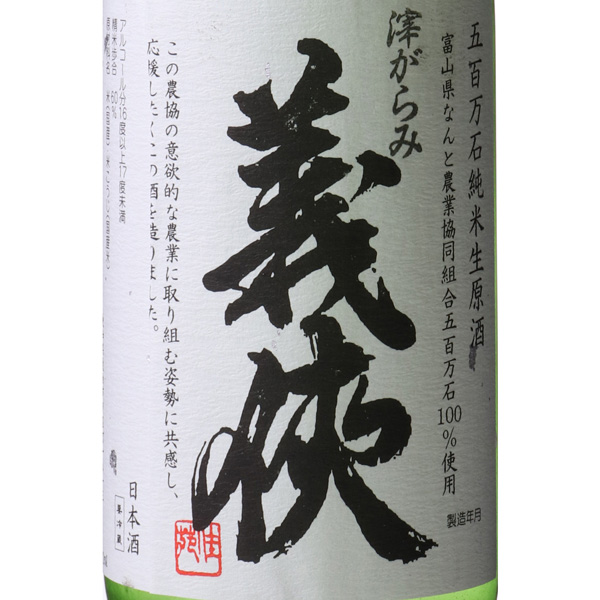 義侠 純米 南砺 五百万石 生原酒 滓がらみ
