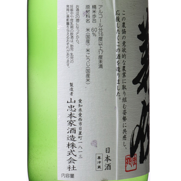 義侠の人気商品の一つで、富山県南砺産五百万石を使って醸した冬季限定の生酒です。滓がらみは初回出荷限定です。ふくらみのある米の甘い香りに麹、パイナップルなどを思わせるフレッシュな香りが絡み、口当たりには芳醇なコクが広がり、後口に五百万石らしいほろ苦さがアクセントにコクのある味わいを引き立てます。蔵紹介