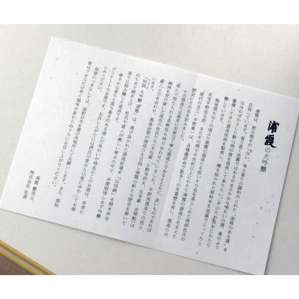 宮城を代表する銘醸蔵 塩釜の豊かな食文化に寄り添う酒享保9年(1724年)創業。美しい風情が多くの歌に詠まれ、歴史的にも食文化的にも恵まれた長い歴史の息づく港町塩竃に蔵はあります。全国新酒鑑評会では全国屈指の金賞受賞歴を誇ります。伝統を大切にし、上品な"品格のある酒"を目指しています。日本酒が持つほど良い米の旨み、味と香りの調和のとれた、まろやかで上品な飲み飽きのしない味わいが浦霞の特長です。食中で活きる味わいで、特に塩釜の特産であるマグロや牡蠣には好相性です。