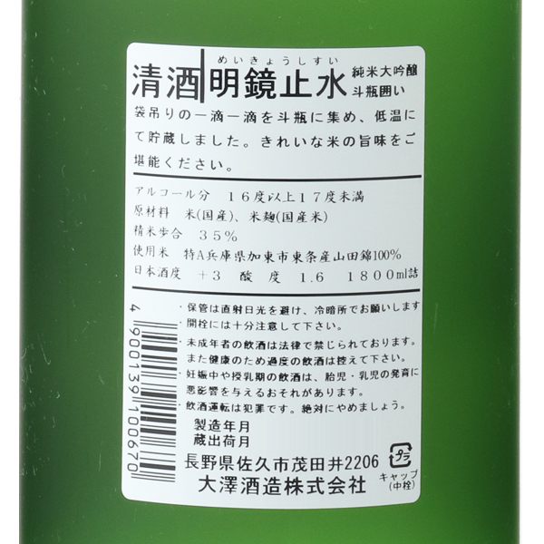 明鏡止水 純米大吟醸 斗瓶囲い *クール便のみ