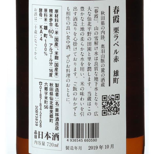 春霞 特別純米 雄町 栗ラベル 赤
